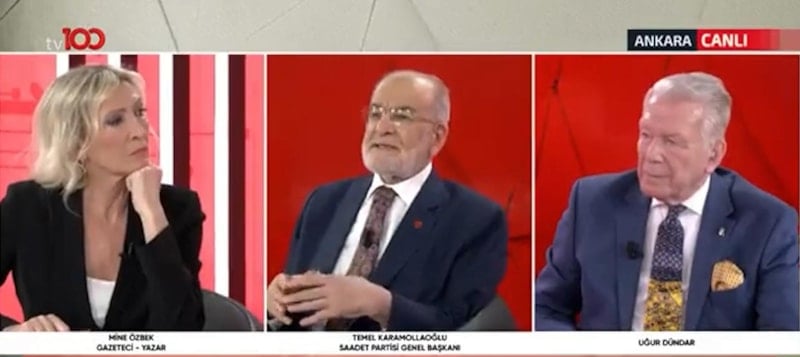 Saadet Partisi Genel Başkanı Temel Karamollaoğlu, tv100'de yayınlanan Uğur Dündar ile Mine Özbek'in 'Haftanın Panoraması' programına konuk oldu.