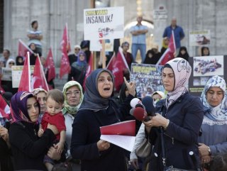 Eminönü Meydanı'nda toplanan kadın kolları mensuplarının “sahillerimize vuran geleceğimiz” konulu açıklamasında mülteci dramına dikkat çekti.