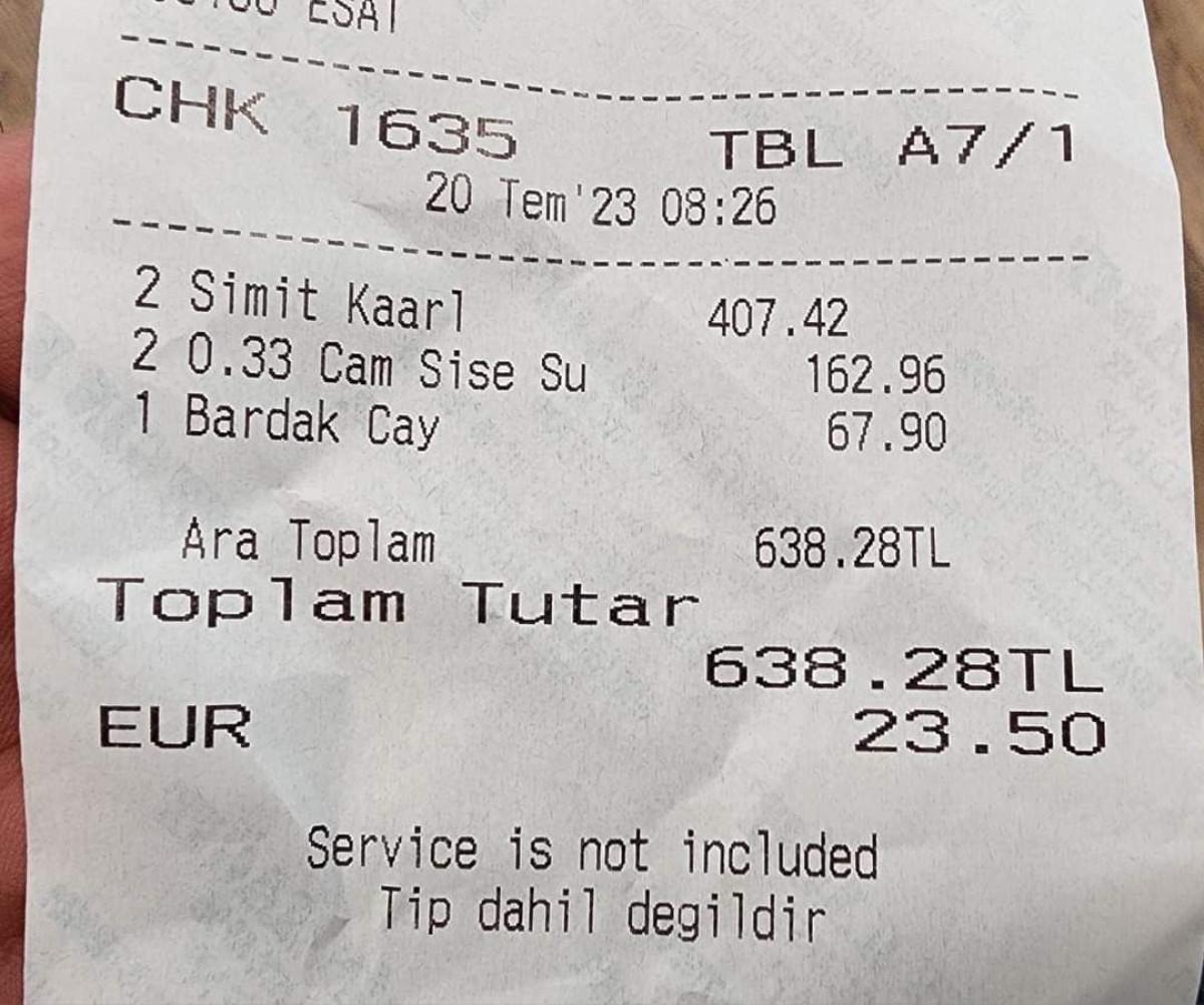 Yolcular tarafından paylaşılan fişlerde; ısıtılmış simitin ortalama 200 liraya satıldığı görülüyor.