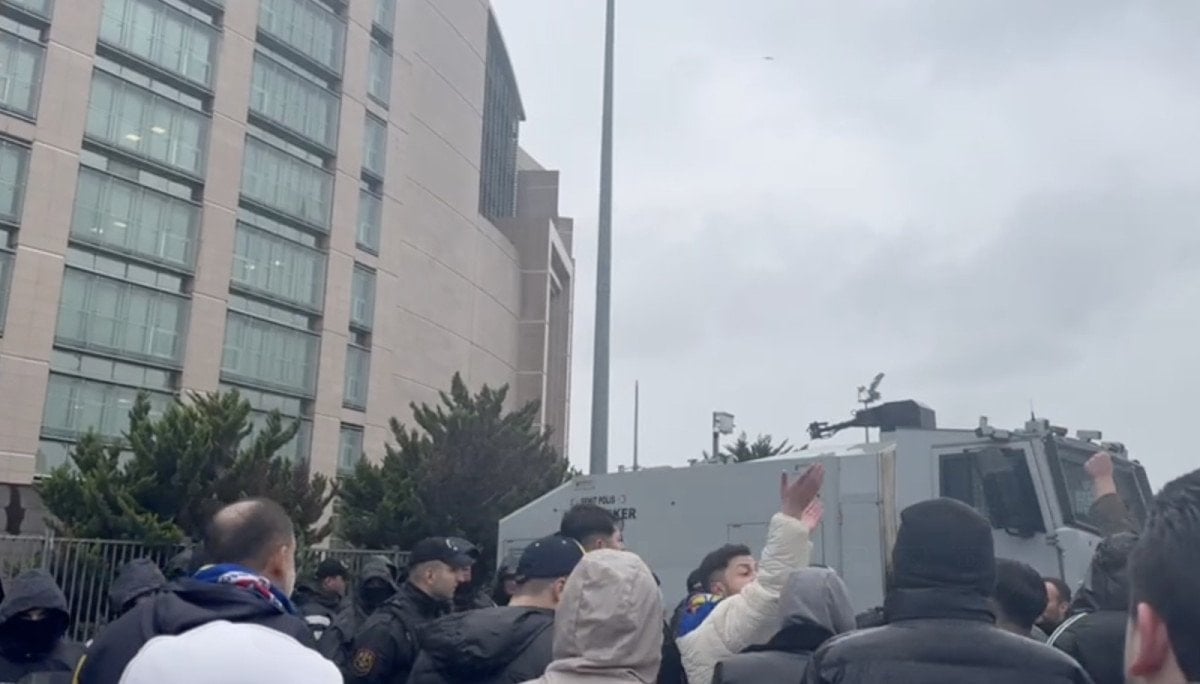 Adliyenin etrafında geniş güvenlik önlemleri alınırken Fenerbahçeli taraftarlar, Saran'a destek için adliye çevresinde toplandı.