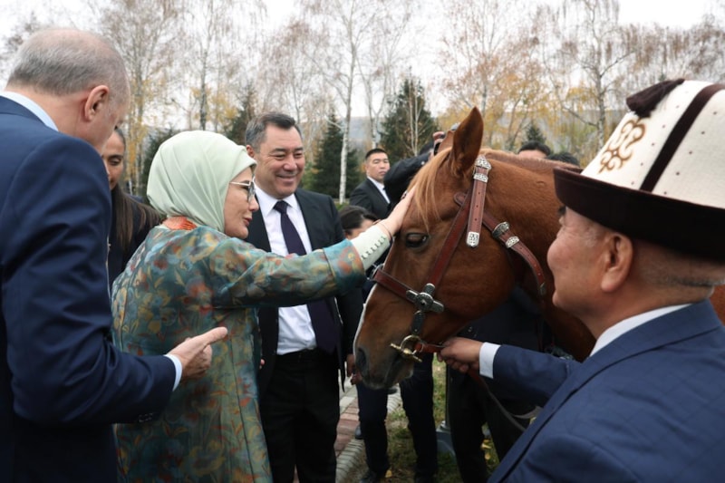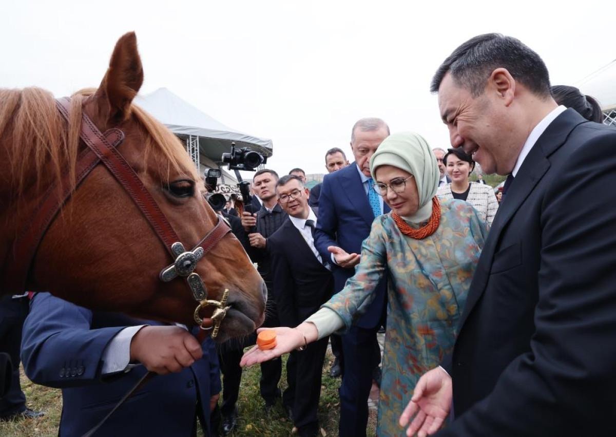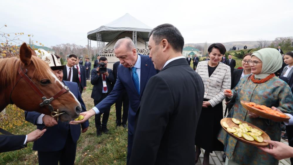 Bu kapsamda Kırgızistan'da bulunan Cumhurbaşkanı Recep Tayyip Erdoğan, Kırgızistan Cumhurbaşkanı Sadır Caparov tarafından kabul edildi.