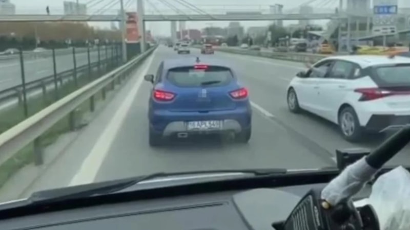 Sol şeritte olmasına rağmen düşük hızda ilerleyen sürücü, aynı zamanda trafikteki akışı yavaşlattı.