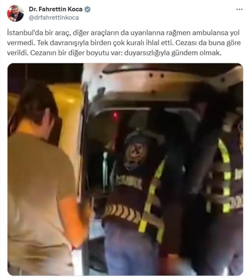 Sürücünün cezalandırıldığını belirten Bakan Koca, şu ifadeleri kullandı: