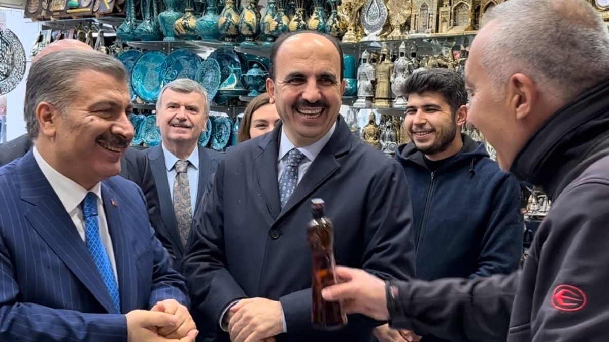 Bakan Koca, Konya Büyükşehir Belediye Başkanı Uğur İbrahim Altay'ın eşliğinde esnafı ziyaret etti.