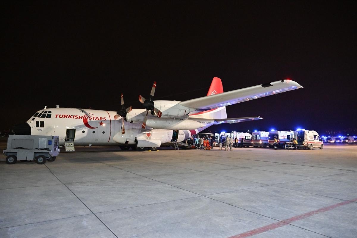 İsrail'in Gazze'ye saldırılarında yaralanan 59 hastayla beraberindeki 72 refakatçi, Milli Savunma Bakanlığına (MSB) ait uçakla tedavi için Türkiye'ye getirildi.