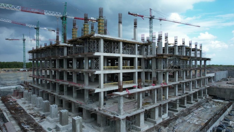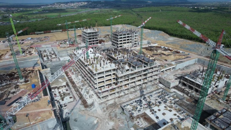 Sakarya'nın Adapazarı ilçesinde 300 dönümlük alanda yapımı devam eden 1000 yatak kapasiteli Sakarya Şehir Hastanesi inşaatı yükseliyor.