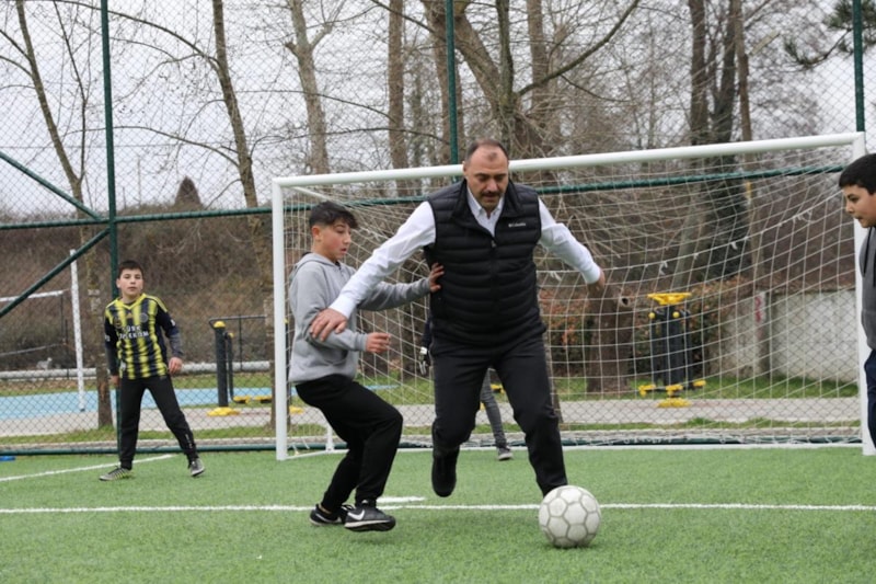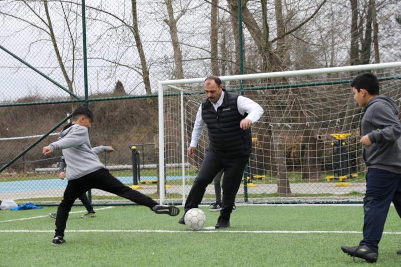 Sakarya Valisi Çetin Oktay Kaldırım, Hendek ilçesinde halı sahada yarıyıl tatiline giren öğrencilerle futbol oynadı. Vali Kaldırım o anları sosyal medyasında paylaştı.