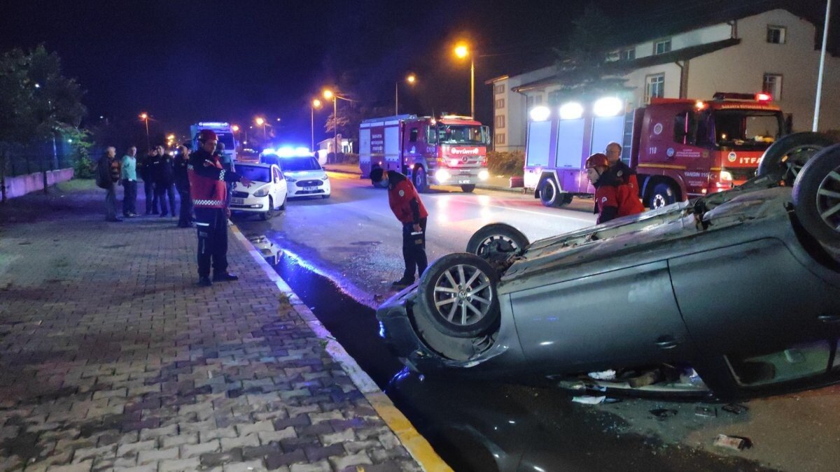 Kontrolden çıkan otomobil park halindeki S.C. idaresindeki otomobile çarparak takla attı.