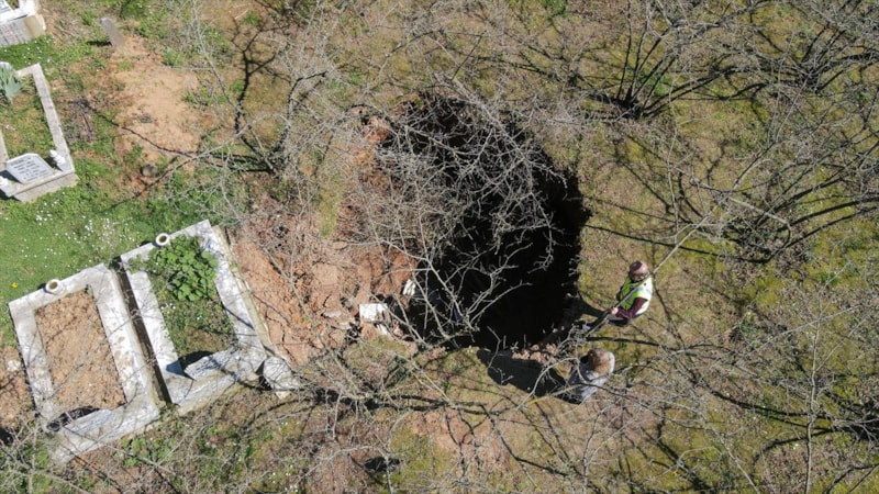 Kentin mezarlığında çukur olduğunu fark eden köy halkının durumu muhtarlığa bildirmesi üzerine inceleme başlatıldı. Yapılan incelemelerde obruğun 6 metre olduğu öğrenildi.