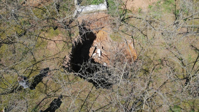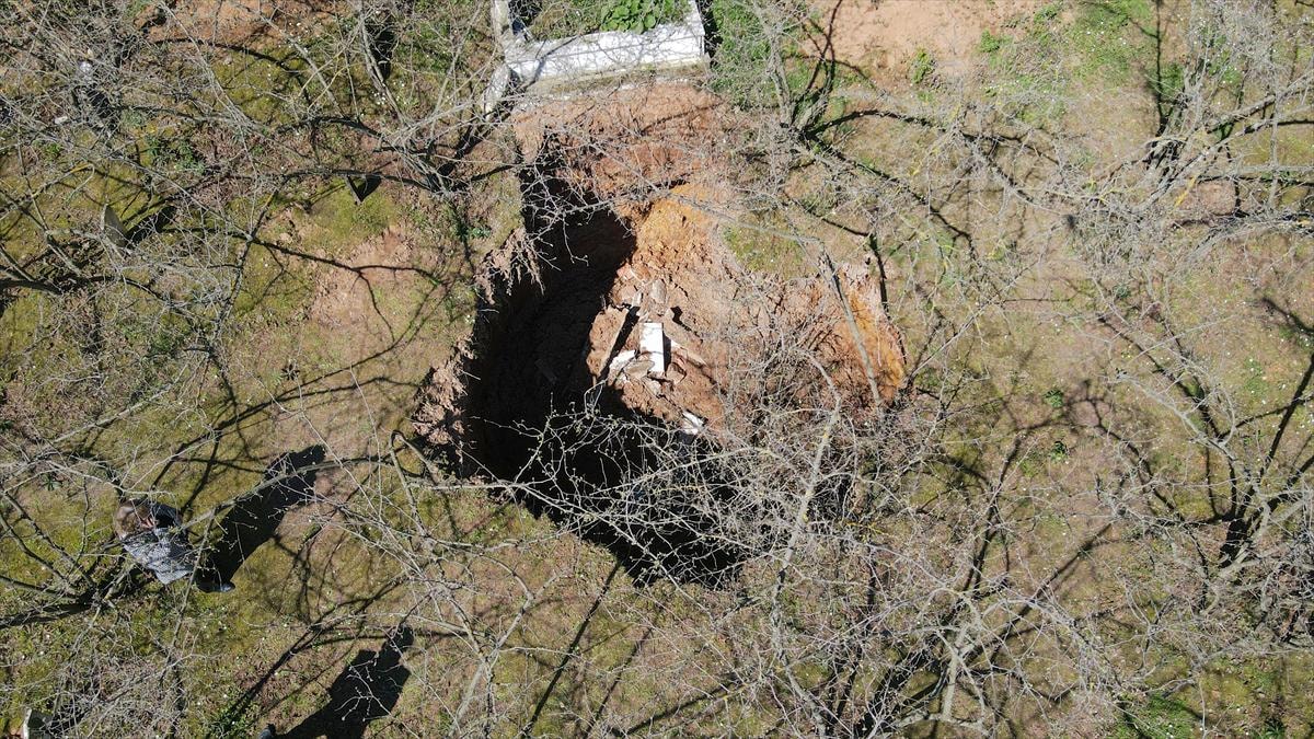 Fındık bahçesinin de bulunduğu alandaki çökme nedeniyle 1 mezarlık zarar gördü.