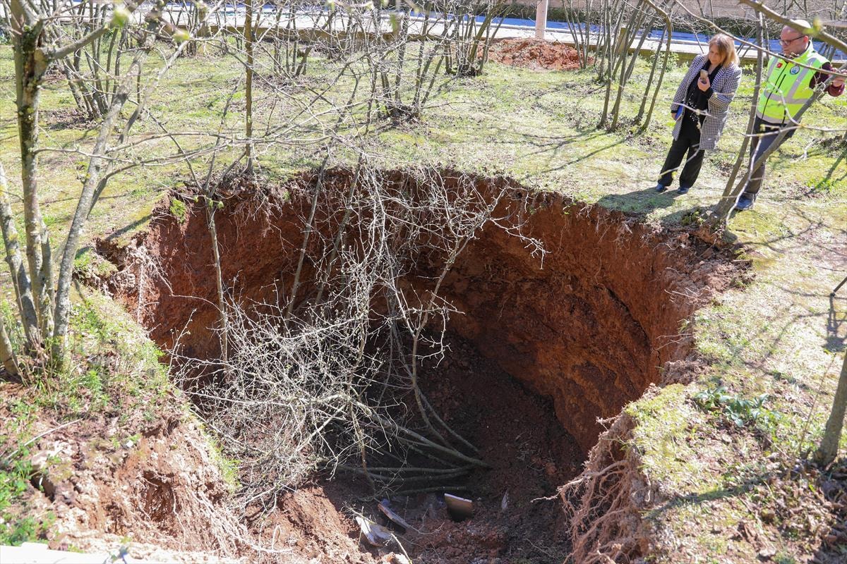 Belediyeye haber verilmesi üzerine bölgeye yönlendirilen jeoloji mühendisleri, inceleme sonucu çapı ve derinliği 6 metre olan obruğun meydana geldiğini belirledi.