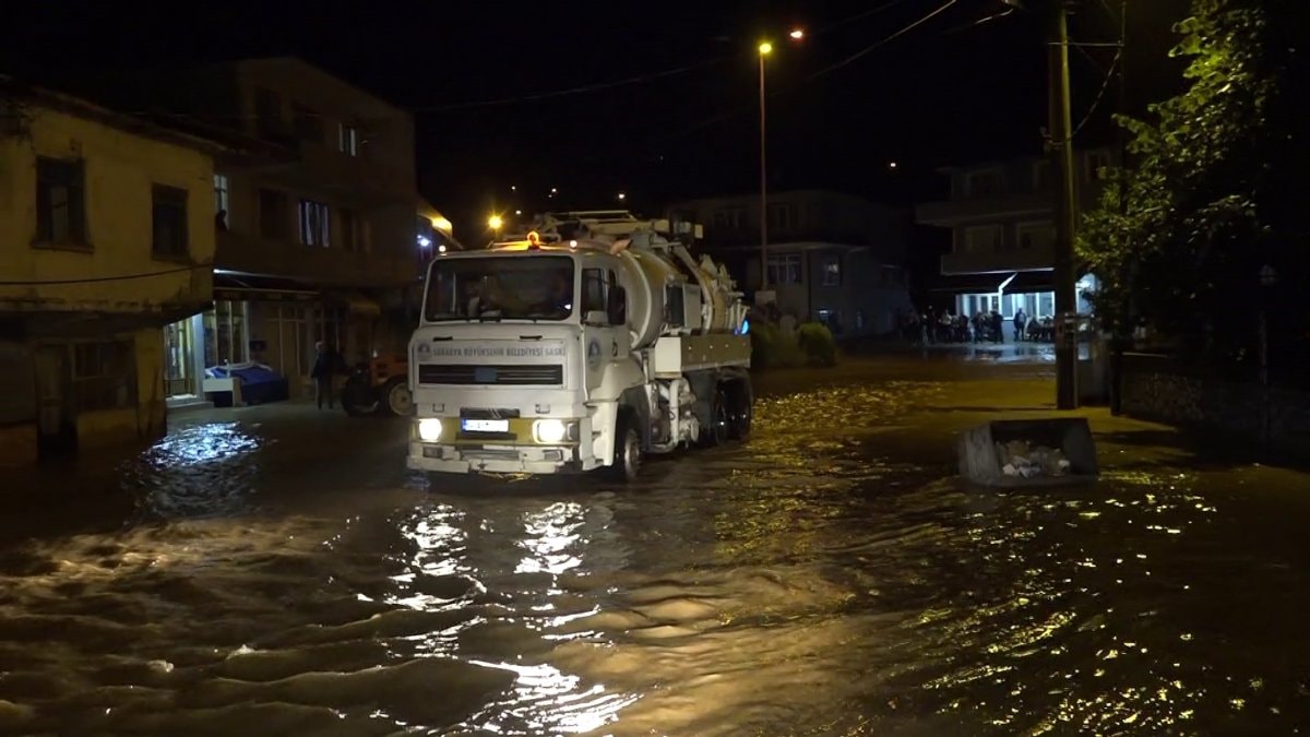 Karasu'da bastıran yağış sonrasında mahalle sular altında kaldı. Su seviyesi 70 santimetre yükselirken ev ve iş yerleri sular altında kaldı.