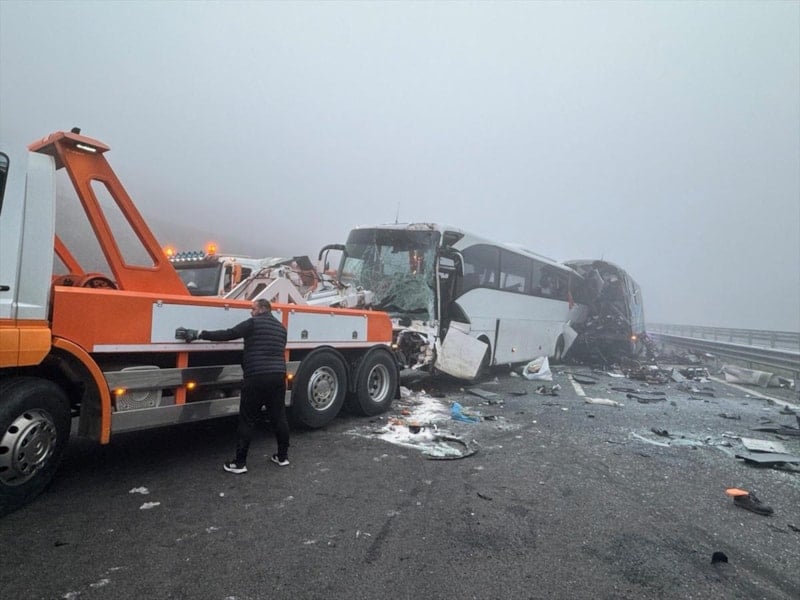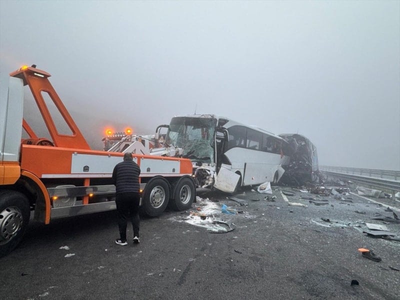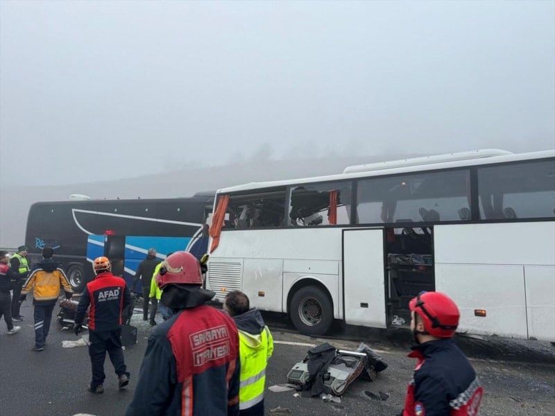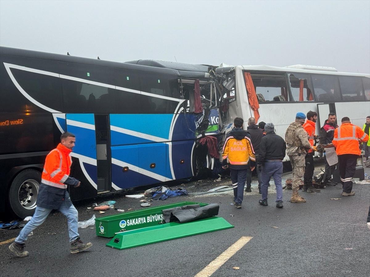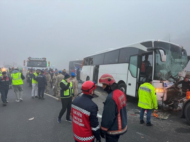 Kuzey Marmara Otoyolu'nun Sakarya Dağdibi mevkiinde gerçekleşen olayda, aralarında 3 otobüs ve 1 tırın da bulunduğu 7 araç zincirleme trafik kazasına karıştı.