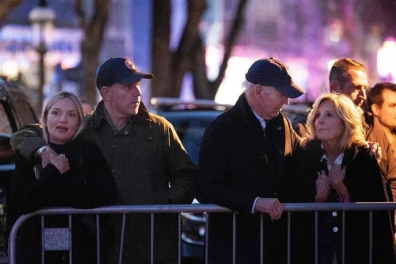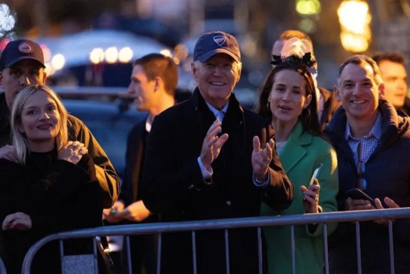 Biden'ın görmezden geldiği protestocular, yılbaşı için ışıklandırılmış bir ağacın etrafında toplanarak akşam saatlerine kadar slogan atmaya devam etti.
