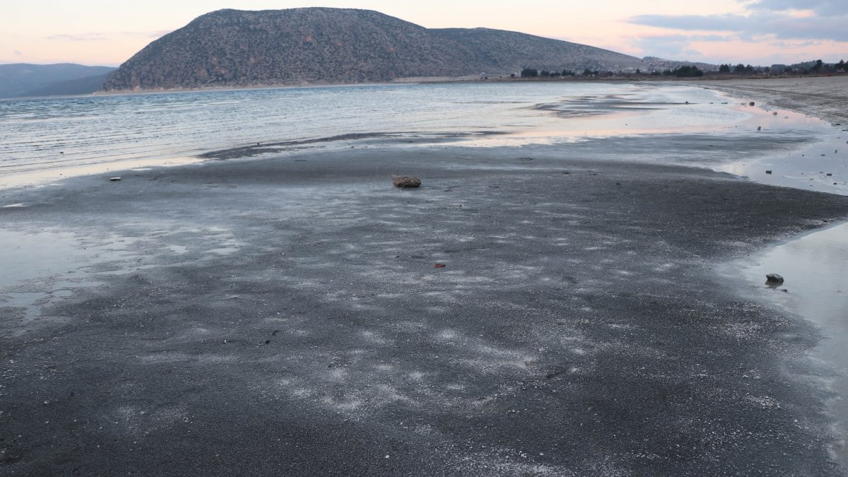 Salda Gölü'nün Beyaz Adalar ve halk plajı bölümünde suların çekilmesinden sonra küçük adacıklar ortaya çıktı.