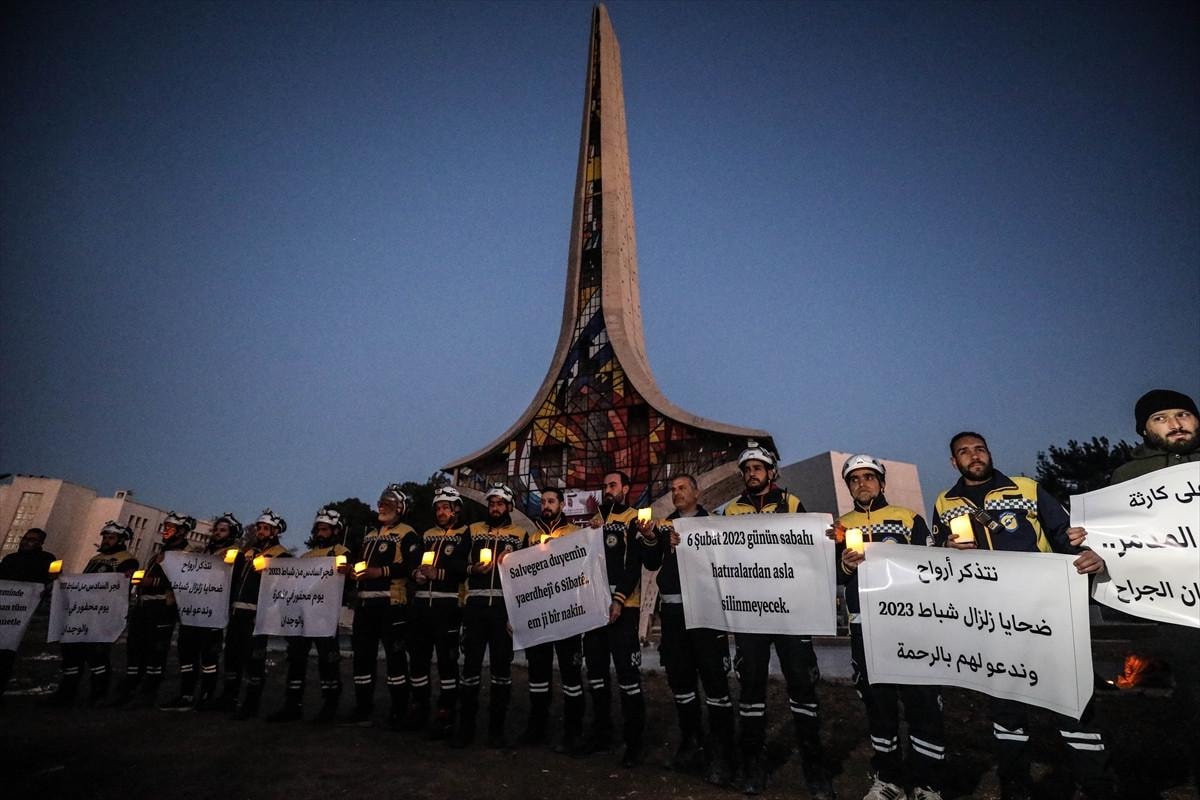 Suriye Sivil Savunma (Beyaz Baretliler), Şam'daki Emevi Meydanı'nda 6 Şubat 2023'teki büyük depremin ikinci yılı anısına bir tören düzenledi. Etkinliğe katılanlar, ellerinde Türkçe ve Arapça yazılmış dövizler taşıyarak, "6 Şubat depreminde Suriyelilere uzanan tüm yardım ellerini minnetle hatırlıyoruz", "6 Şubat 2023 sabahı hatıralardan silinmeyecek", "Deprem felaketinin üzerinden 2 yıl geçti, hafızamız bu acıyı unutmayacak" ve "Şubat 2023 depremlerinin kurbanlarını rahmetle anıyoruz" mesajlarını paylaştılar.
