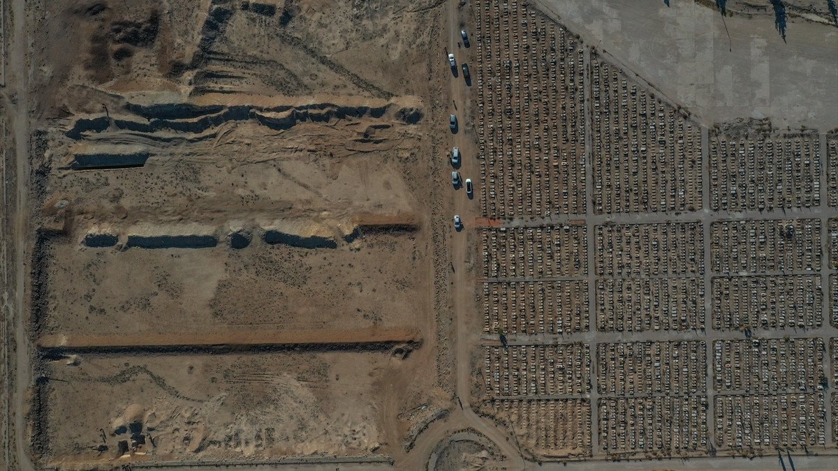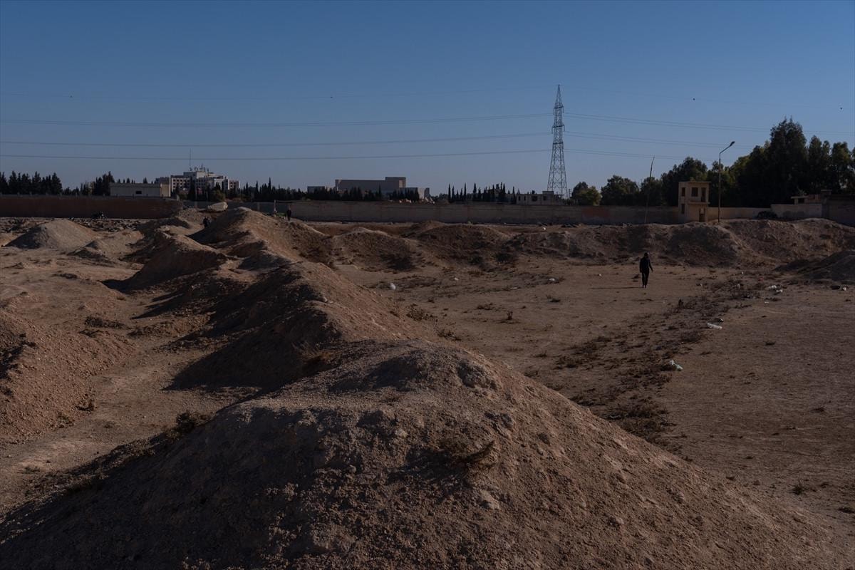 Bu kapsamda başkentin güneydoğusunda, Şam Havaalanı'nın hemen arkasındaki Hüseyniye bölgesinde toplu mezarlık alanı görüntülendi.