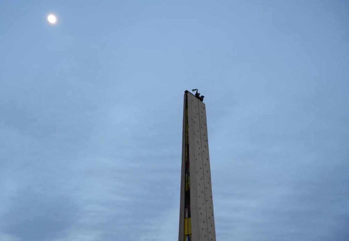 Meydanı dolduran kalabalık, özgürlüğün simgesi olarak dev Şam Kılıcı Anıtı’na çıkarak zaferi kutladı. Havadan görüntülenen meydan, tarihe tanıklık eden sahnelerle dolup taştı.
