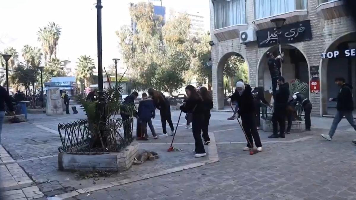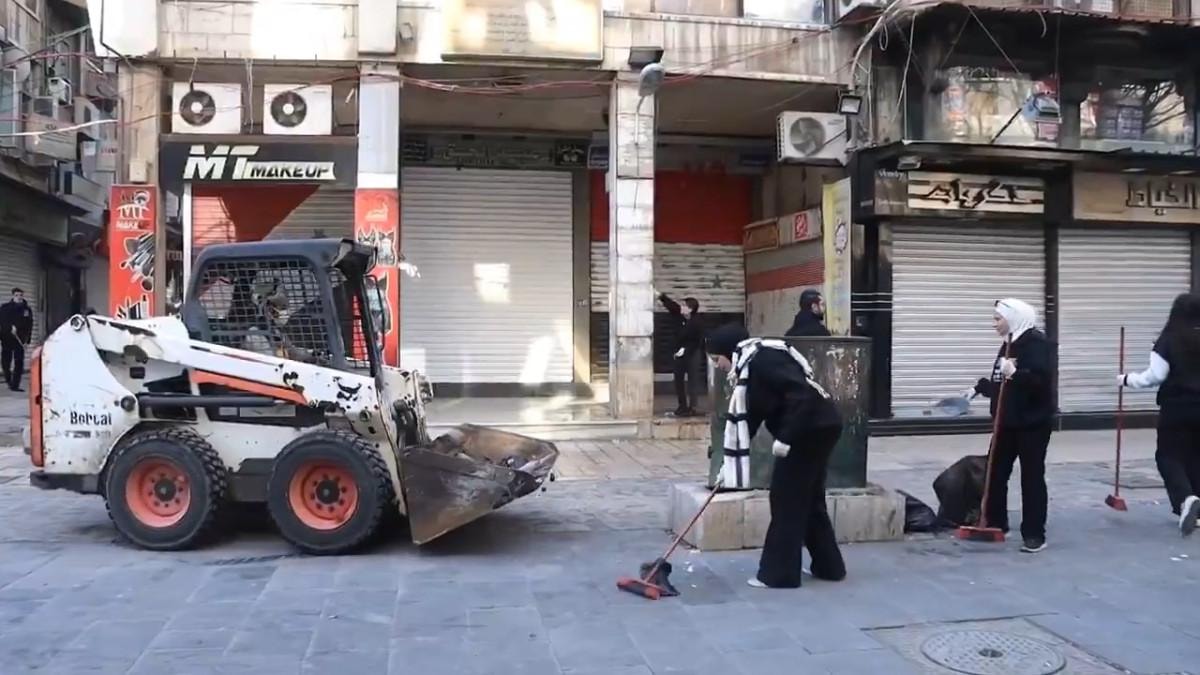 Suriye'nin başkenti Şam'da belediye hizmetlerinin henüz başlamaması nedeniyle temizlik çalışmalarını halk ve gönüllü ekipler üstlendi.