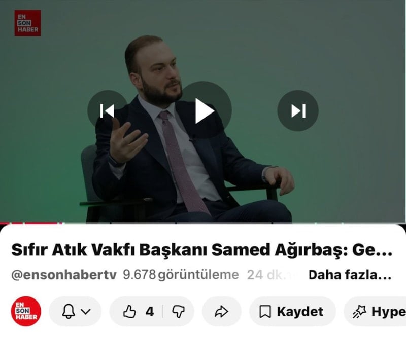 Sıfır Atık Vakfı Başkanı Samed Ağırbaş, 30 Mart Sıfır Atık Günü dolayısıyla Ensonhaber YouTube kanalında Çağlar Cilara'nın moderatörlüğünde yayınlanan 'Son Durum' programının konuğu oldu.