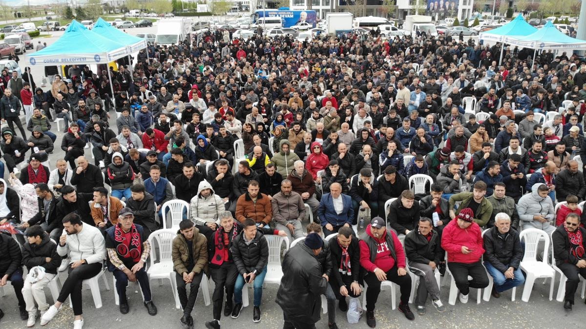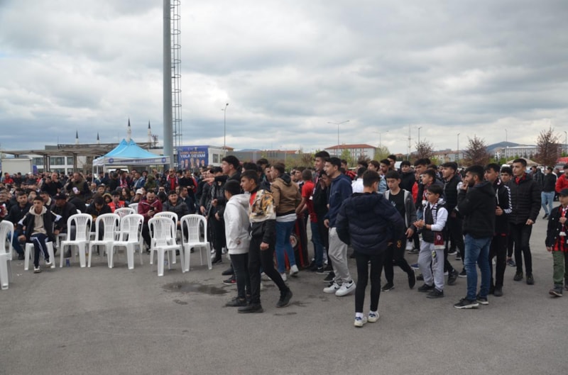 Çorum Belediyesi tarafından stadyumun yanına dev ekran kururken binlerce taraftar stadın etrafında toplanarak takımına destek oldu.
