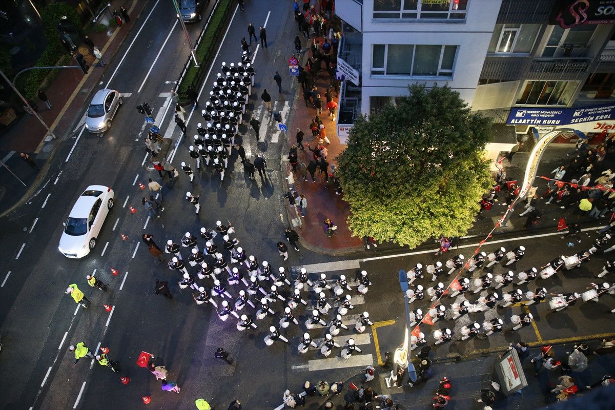Yağmur altında ilerleyen kalabalık, Lise Caddesi, İstiklal Caddesi ve 19 Mayıs Bulvarı’nı geçerek Cumhuriyet Meydanı’na ulaştı.
