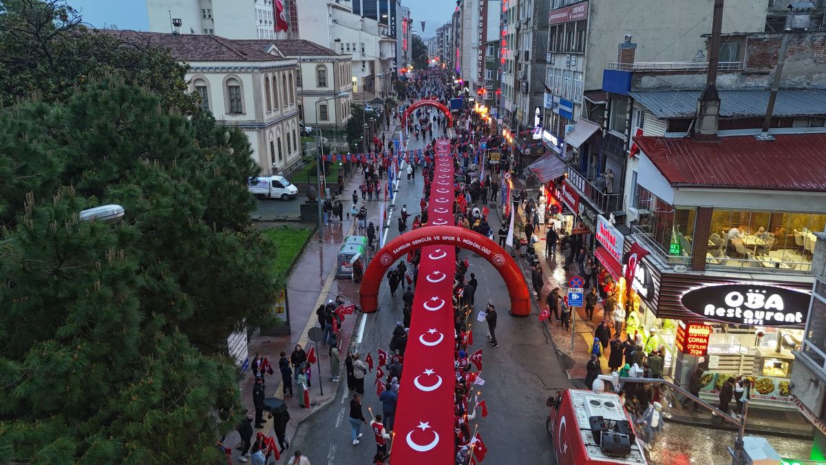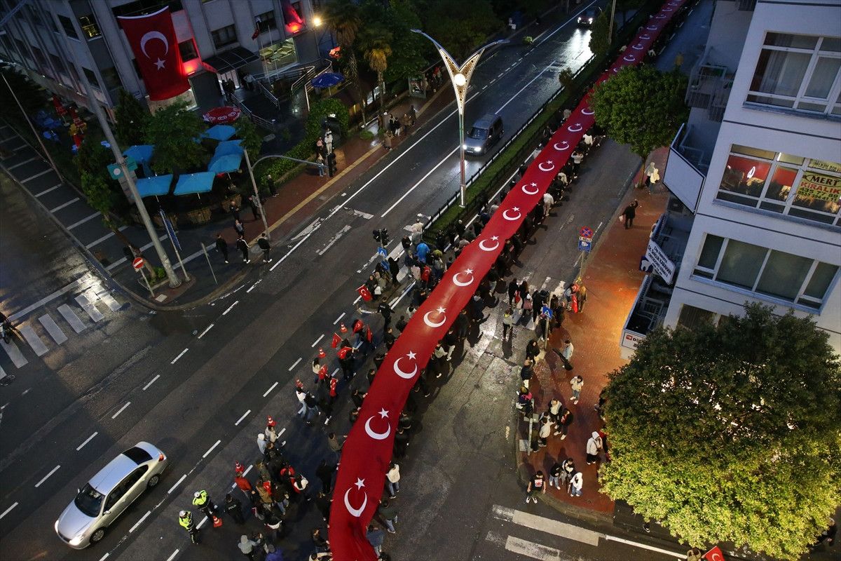 Samsun’un İlkadım ilçesinde 19 Mayıs Atatürk’ü Anma, Gençlik ve Spor Bayramı etkinlikleri çerçevesinde 1919 metrelik dev Türk bayrağıyla “Bayrak ve Fener Alayı” yürüyüşü düzenlendi.