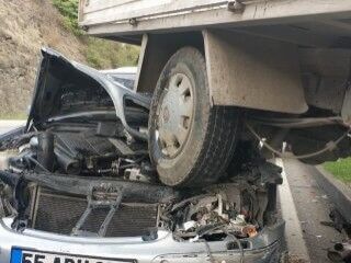 Samet Gündüz idaresindeki otomobil, kamyonete çarptı. Çarpmanın etkisiyle araç, kamyonetin altına girdi. İki sürücü de yaralanarak hastaneye kaldırıldı.