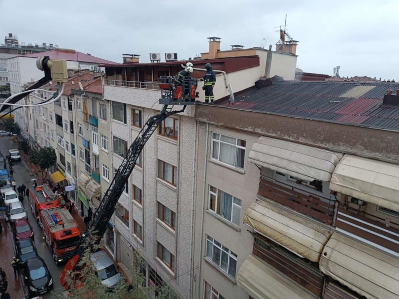 Dumanın azaldığını gören itfaiye ekipleri, kontrol amaçlı içerisinde insan olmayan bir daireye balkondan giriş yaptı.