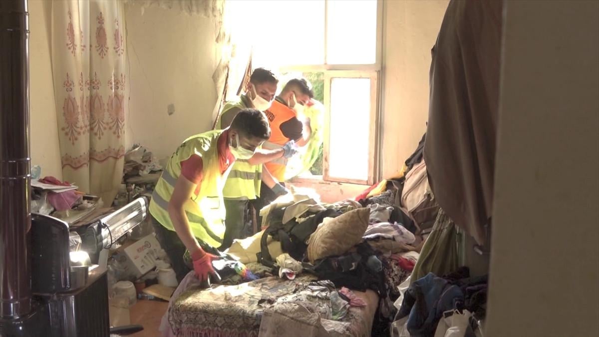 Ekipler, evin içi ile bahçesinde bulunan çöpleri 15 kamyonla çıkardı. Çiçek'e, ayrıca 3 kamyon geri dönüşüm eşyası için de tutanakla 5 bin 100 lira verildi.