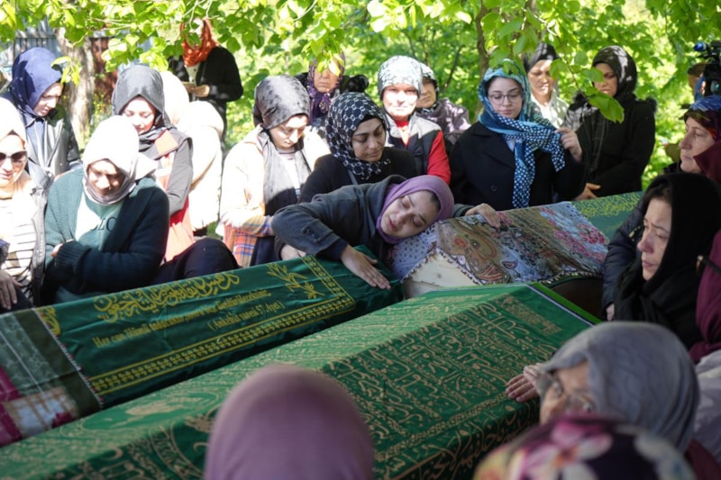 Yan yana konulan tabutlar başında gözyaşları sel oldu.