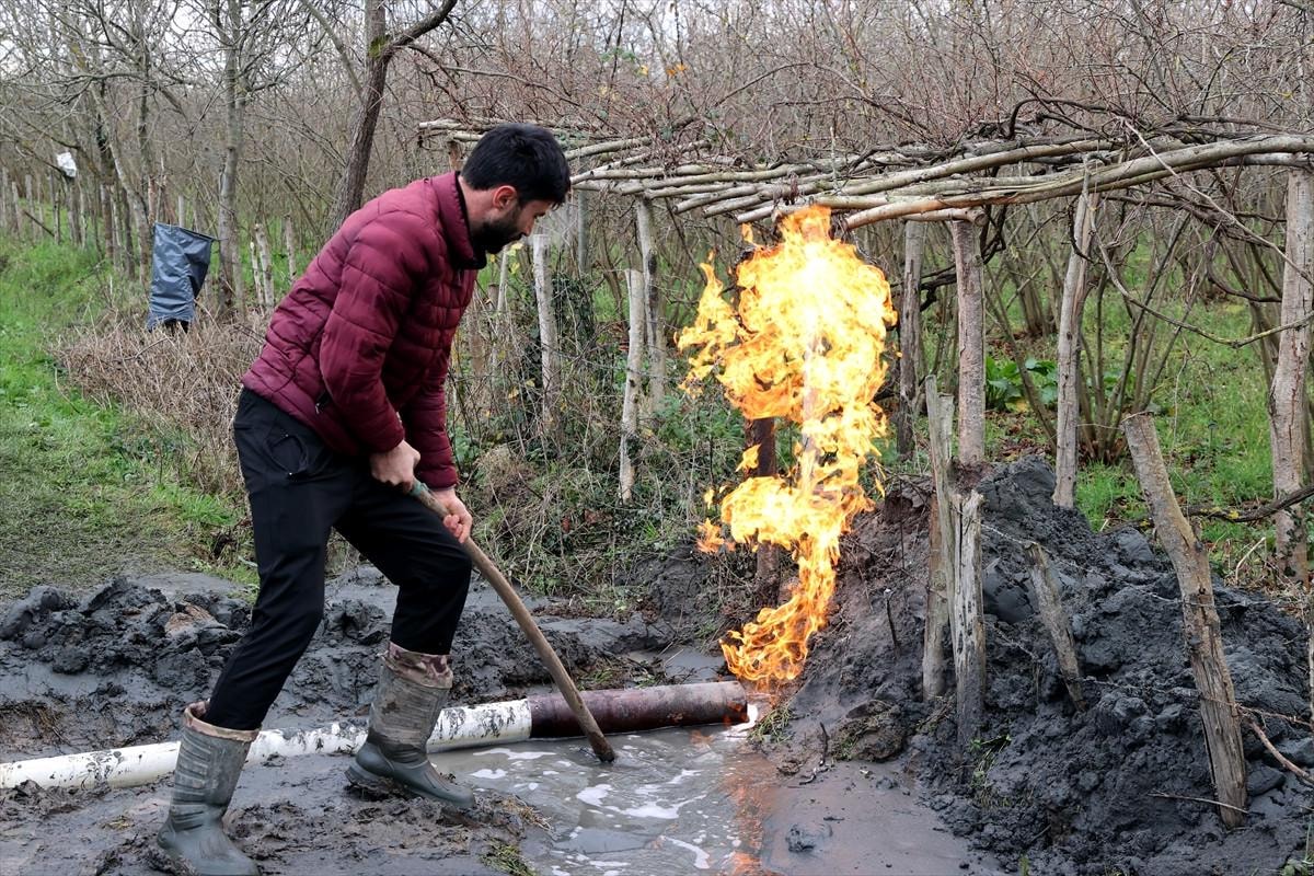 Samsun'da Terme ilçesi Sancaklı Mahallesi'nde bir hafta önce fındık ve çeltik tarlalarında kullanmak amacıyla 33 metre derinliğe yapılan sondaj çalışmasında, su ile birlikte yanıcı gaz çıktı.