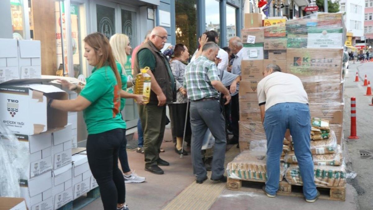 Vatandaşlar piyasa fiyatlarına göre oldukça uygun satılan Toprak Mahsulleri Ofisi (TMO) ayçiçeği yağına ve şekerine yoğun ilgi gösterdi.