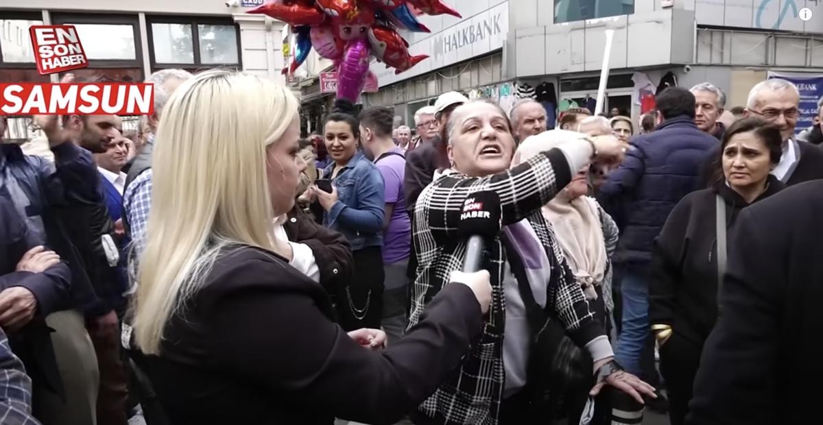Kadın ise kendisine para alıyor diyen vatandaşa sert çıkarak, "Hadi abi yürü işine bak ya, Öcalan’a verin hükümeti tabii. Senin Öcalan’ın benim devletim sayesinde bakılıyor. Senin benim ekmeğimi yiyor Öcalan kimin vergisiyle yaşıyor. Ayıptır ya devlet memuruymuş bilmem neymiş. Ben de çalışanım ben de emekçiyim. Evet zam var ama zamı devlet yapmadı. Zamı biz yaptık, halcisi toptancısı yaptı. 3 kuruş fazla kazanacağız diye 10 liralık malı 30 liraya sattılar." ifadelerini kullandı.