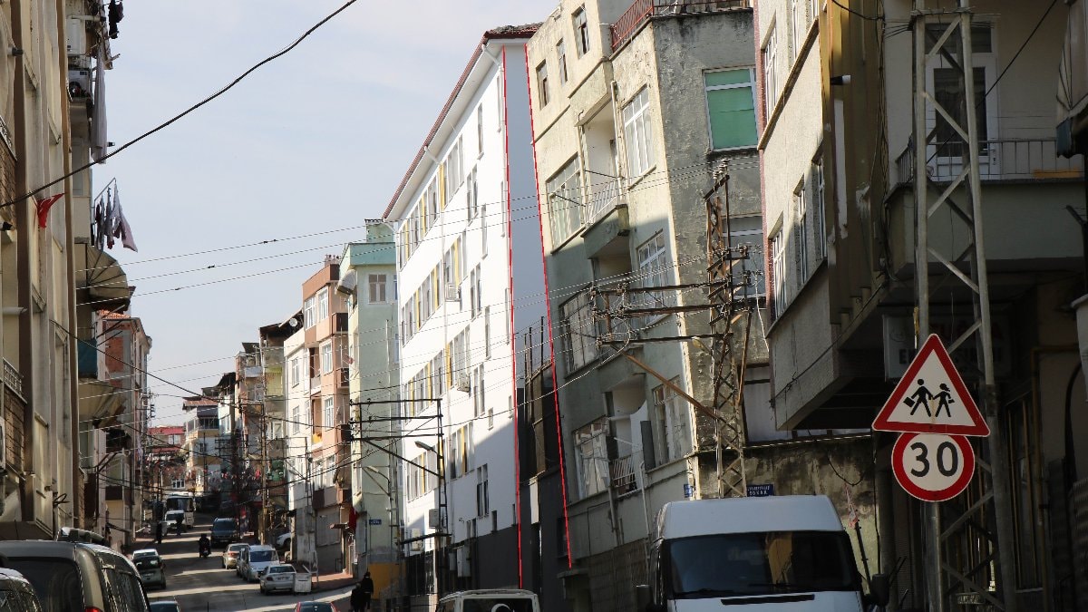 Burhanettin Gazi Sokak üzerinde bulunan, zemini kayan ve yola doğru eğilen binada vatandaşlar oturmaya devam ederken, çevre sakinleri ise riskli binaların kentsel dönüşüme sokulmasını istiyor.