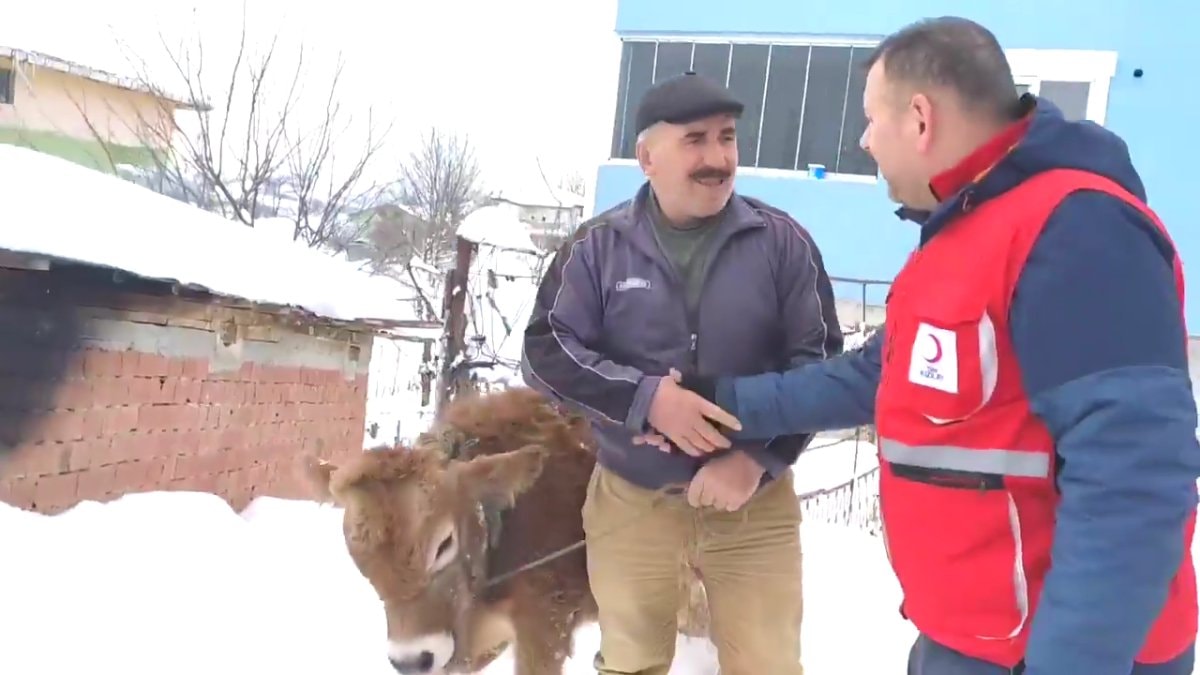 Bölgede büyükbaş hayvancılıkla uğraşan iki kişi, baktıkları dana ve boğayı Kızılay aracılığıyla depremzedelere gönderdi.