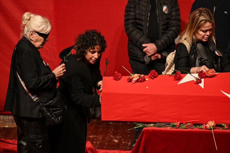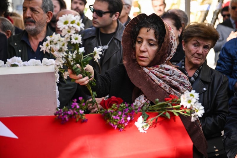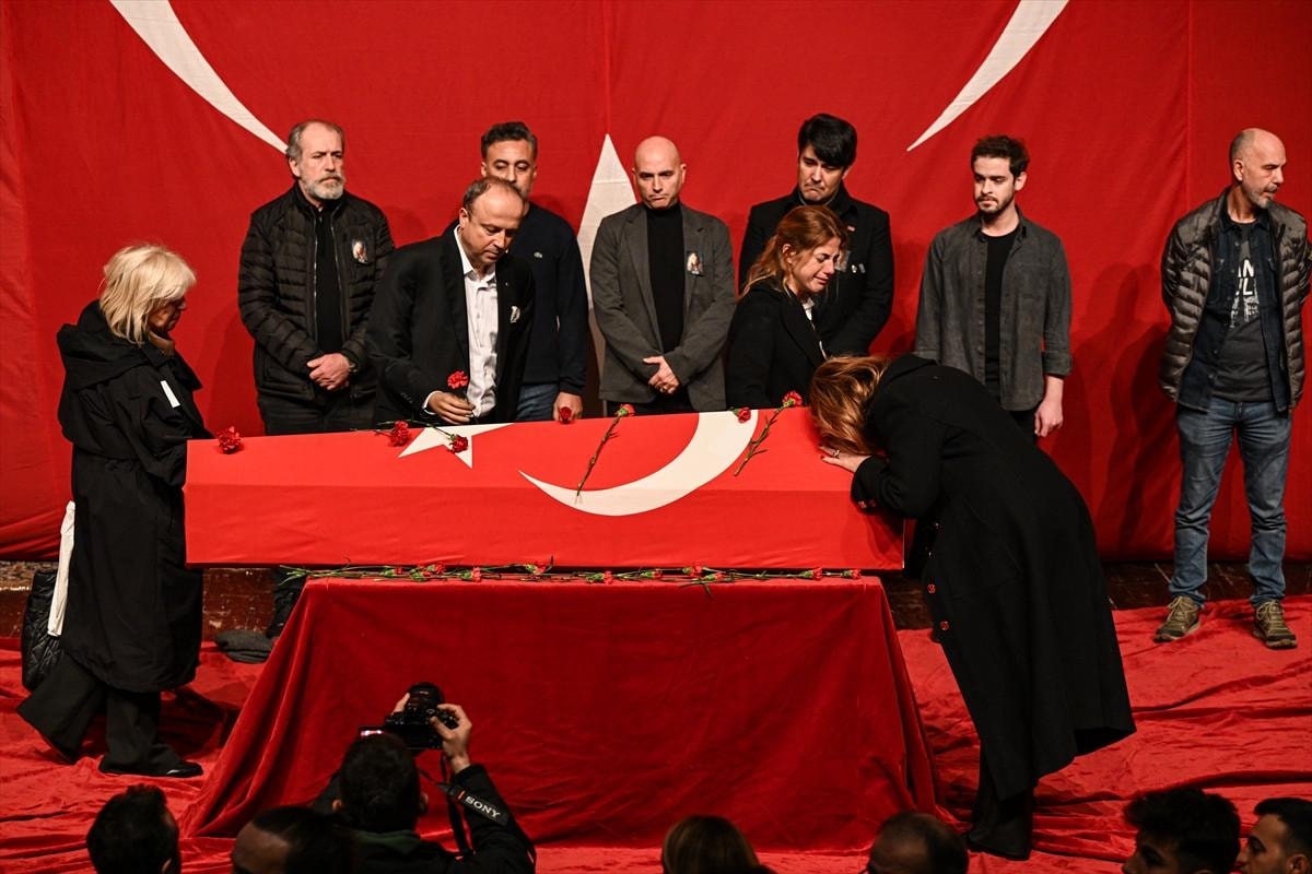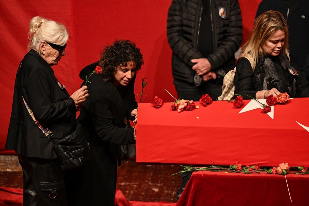 Konuşmaların ardından, oyuncunun Türk bayrağına sarılı tabutunun başına gelen katılımcılar, karanfil bırakarak Algan'a veda etti.