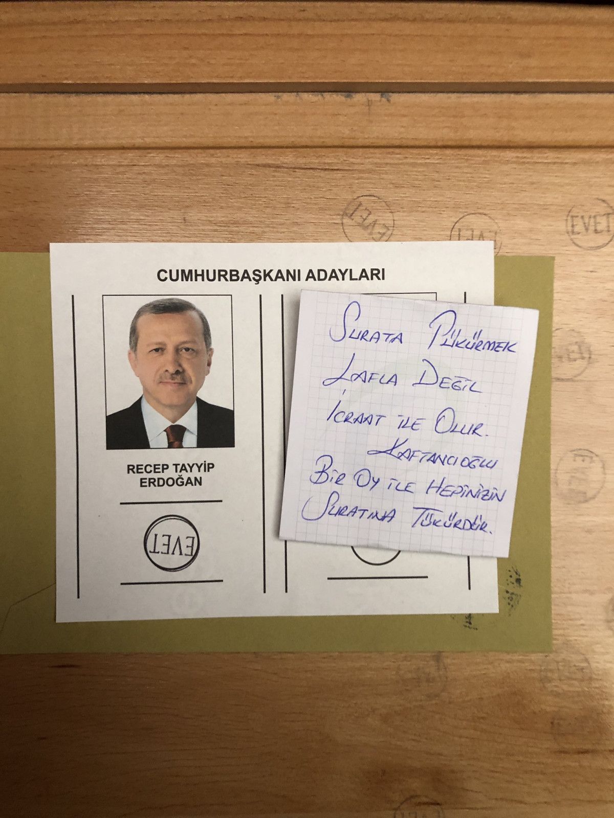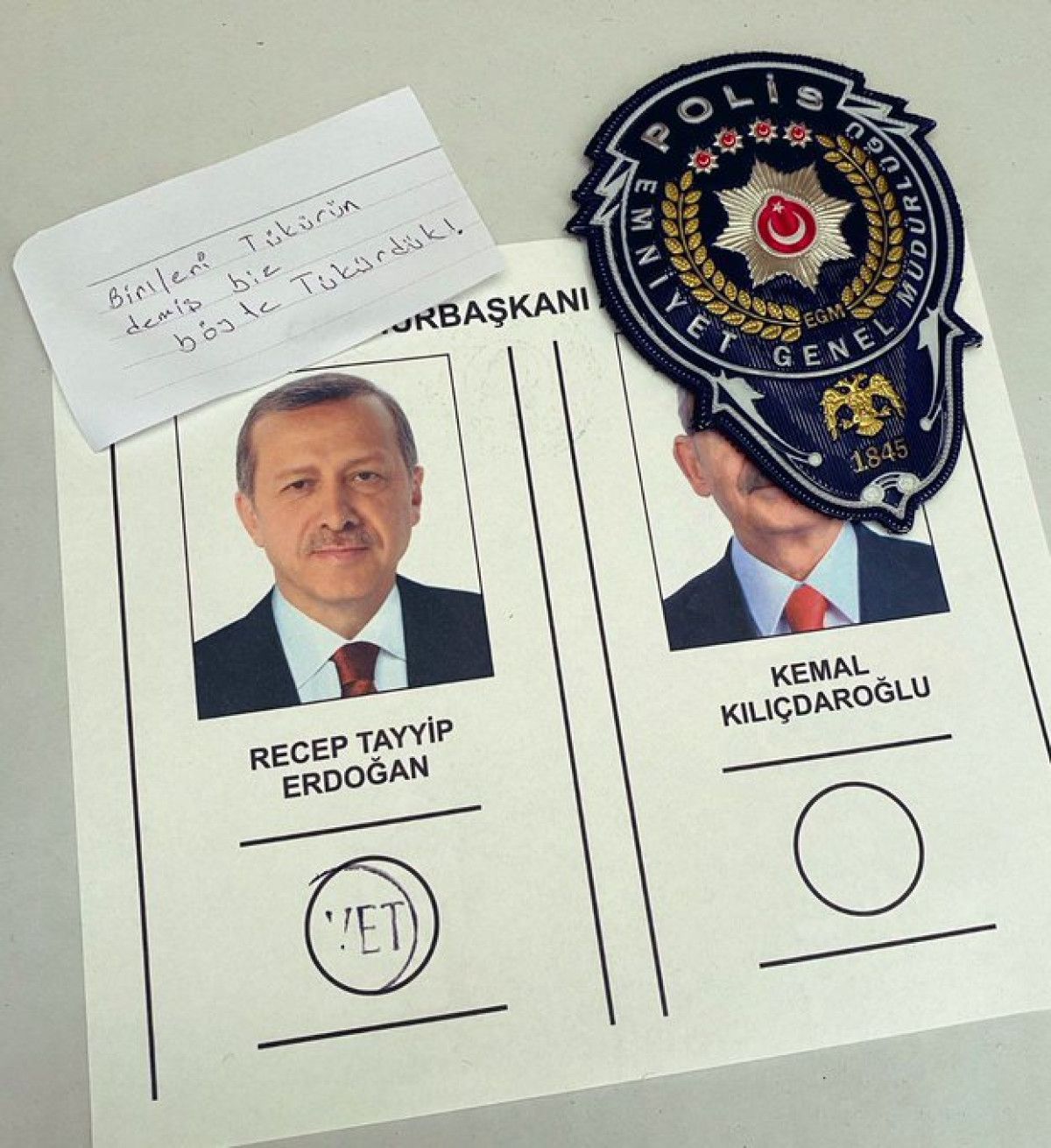 Polis rozeti ile notunu bırakan bazı seçmenler, şunları yazdı: