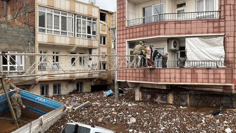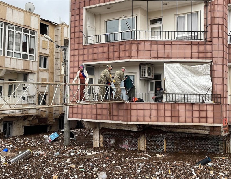 Deprem ve sel felaketinden etkilenen kentte, vatandaşların evlerden tahliyesi için çalışma yapılıyor.