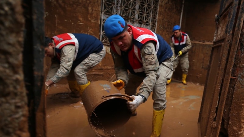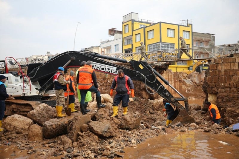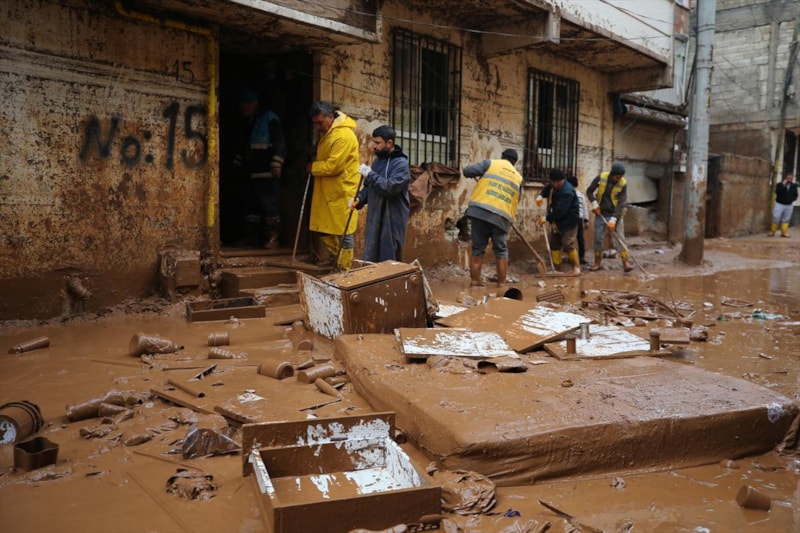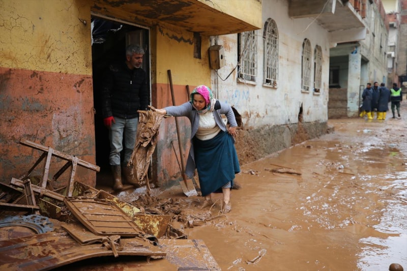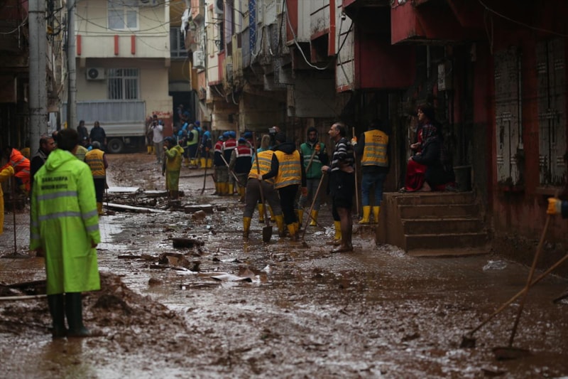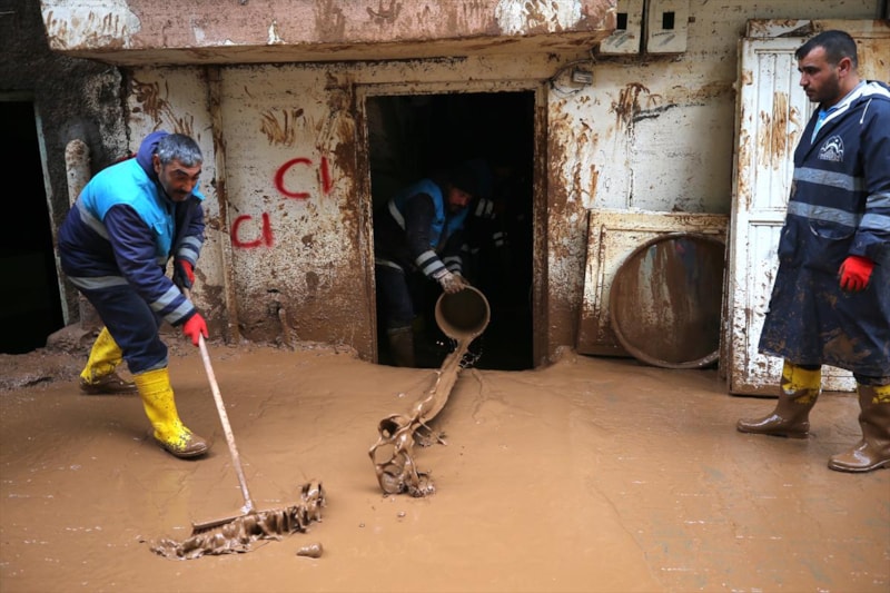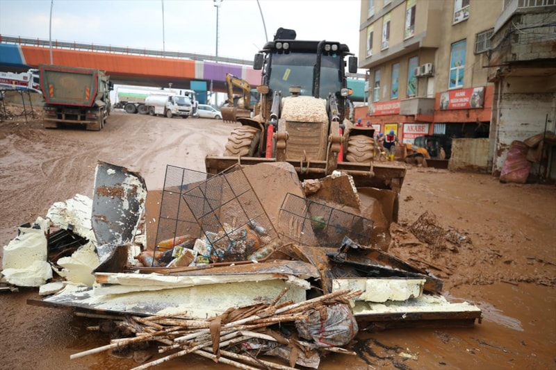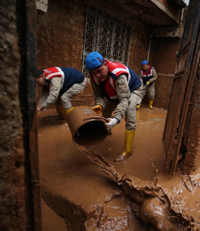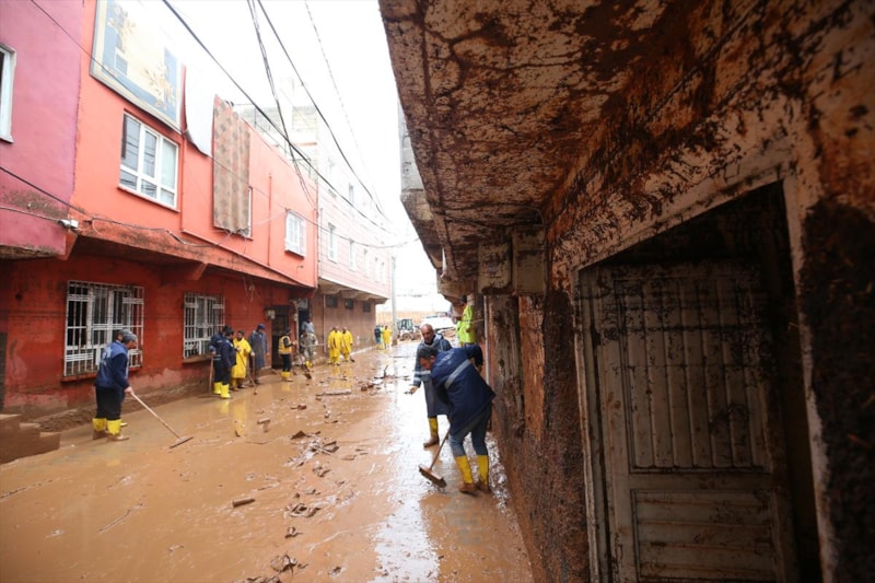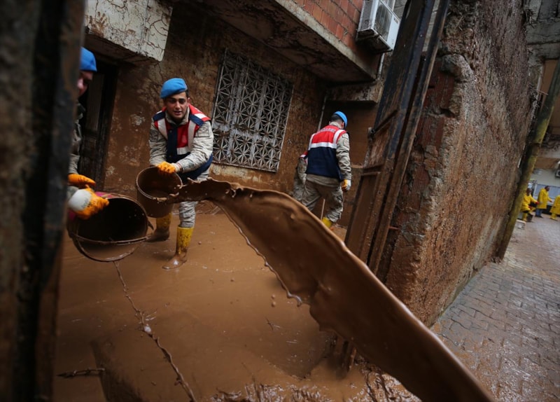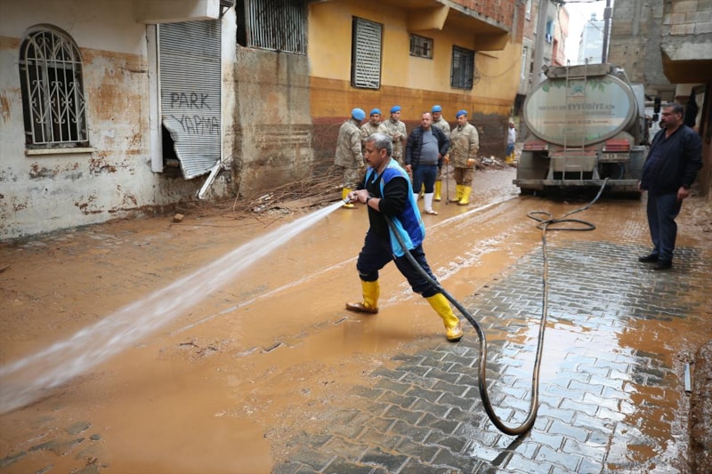 Sağanak yağışın sele döndüğü Şanlıurfa'da can kayıpları yaşanırken, kentteki temizlik çalışmalarına askerler de katıldı.