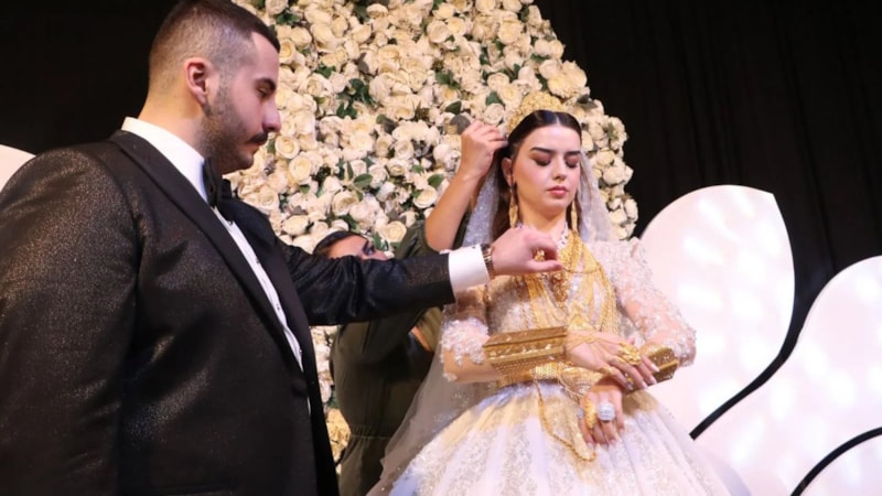 Altınların ağırlığı nedeniyle hareket edemeyen geline yakınları yardımcı olurken, altın takmayan davetliler ise salondaki sandığa para koyarak isimlerini yazdıkları zarfları attı.