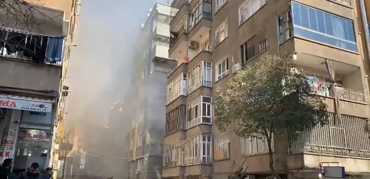 İşlek bir caddenin yakınında bulunan 7 katlı binanın giriş katından dumanlar yükselmeye başladı.