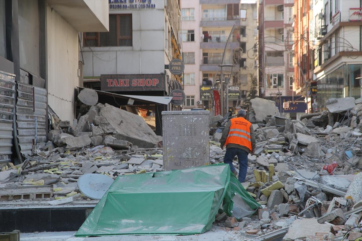 Kentin farklı bölgelerinde yıkılan ve ilk etapta içerisinde insan olmadığı için sonraya bırakılan enkazlar için çalışma başlatıldı.