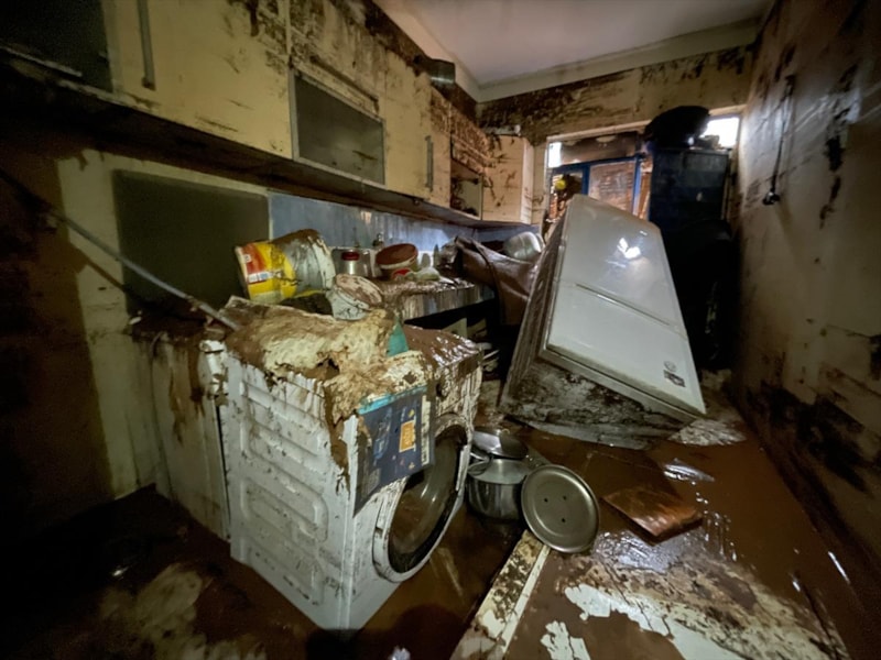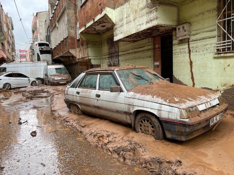Sel felaketinde çok sayıda araç ve ev zarar gördü.
