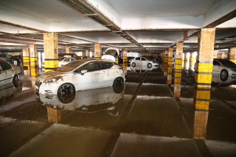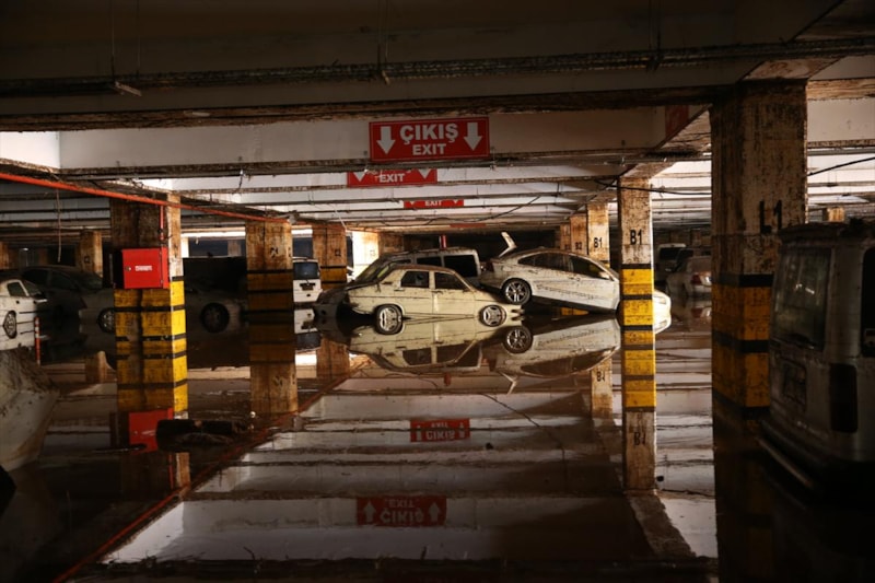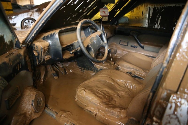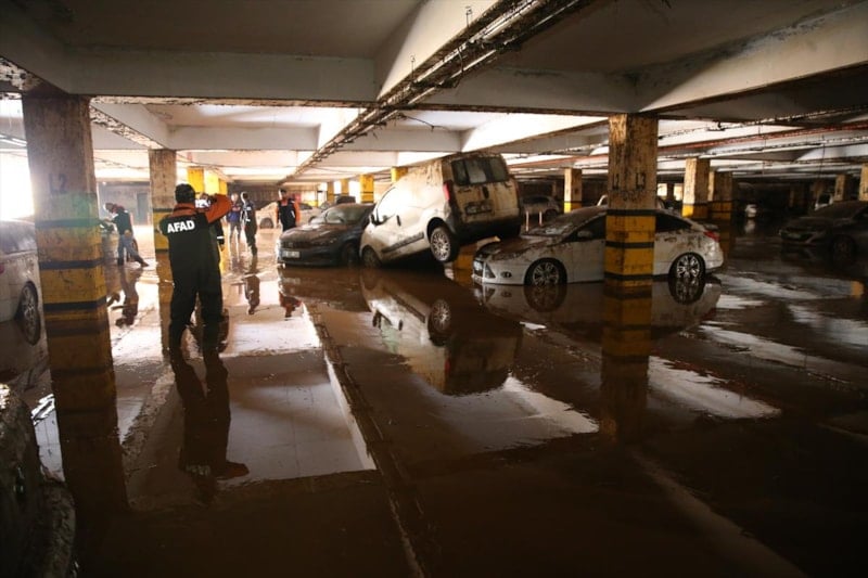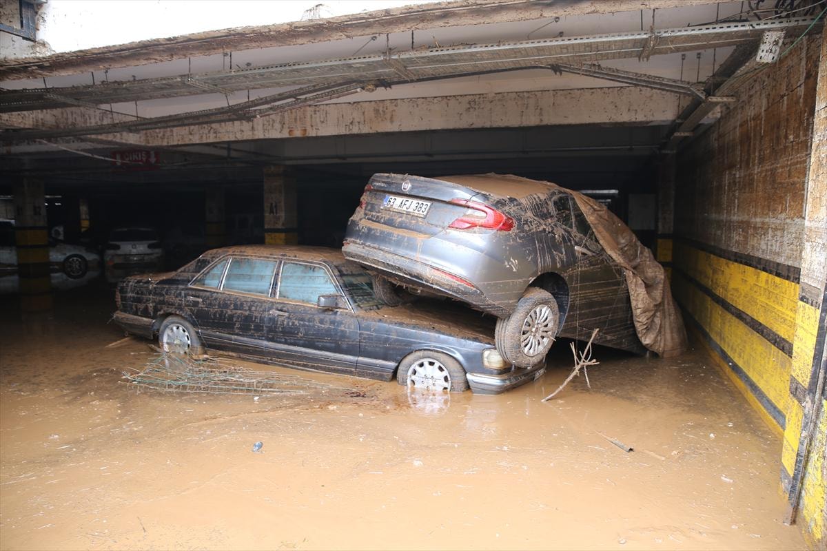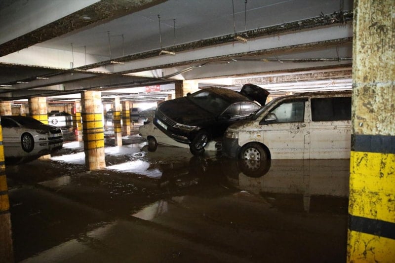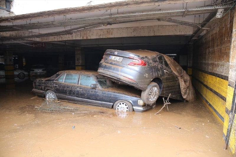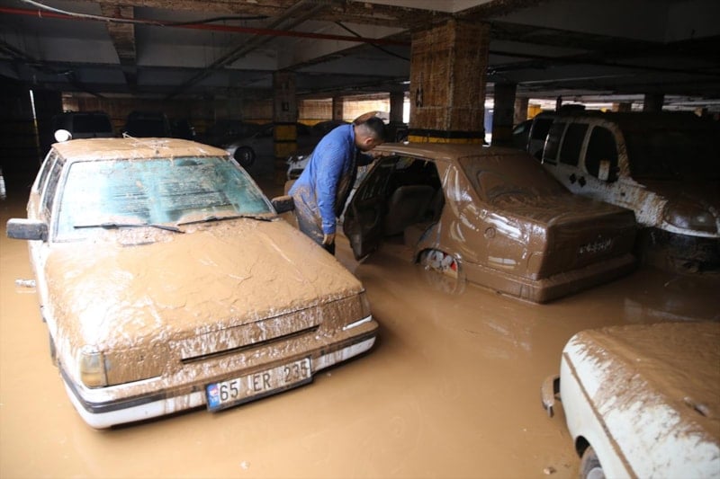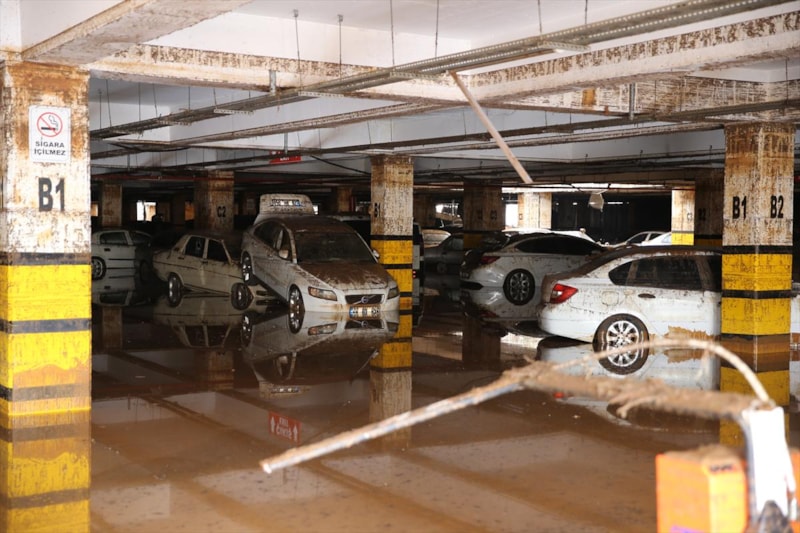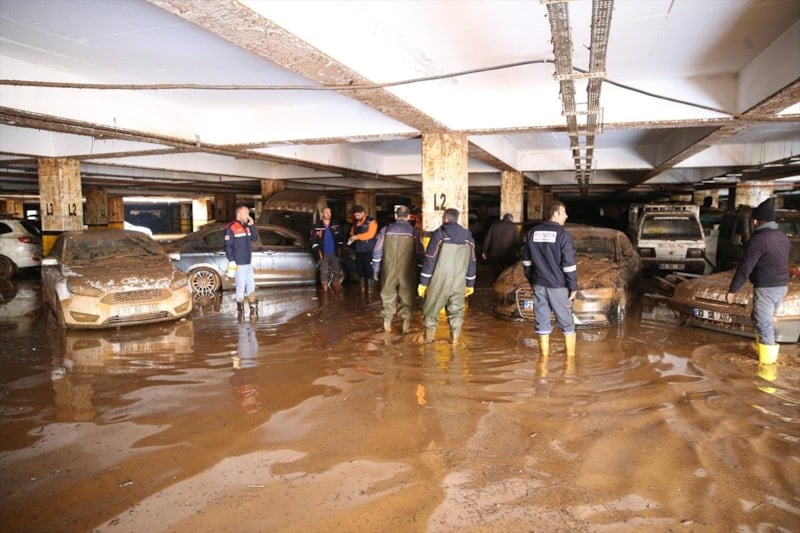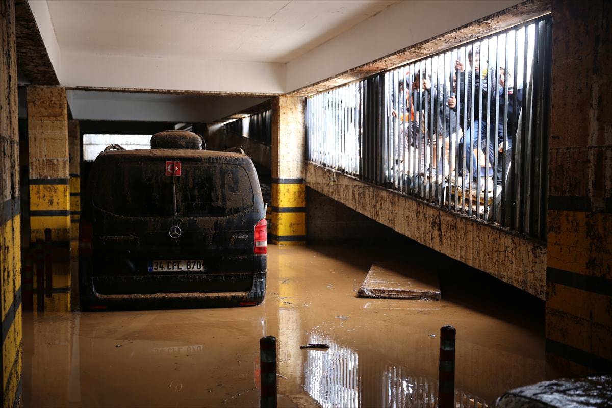 Birbirinin üzerine binen, yer değiştiren ve çamurla kaplanan araçların, temizliğin tamamlanmasının ardından çekiciler yardımıyla otoparktan çıkarılacağı belirtildi.