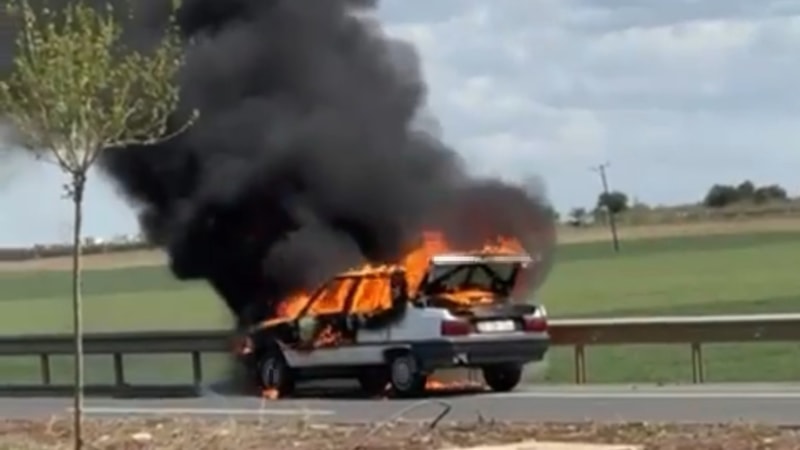 Şanlıurfa'nın Hilvan ilçesinde, henüz belirlenemeyen bir sebepten dolayı otomobil alev almaya başladı.