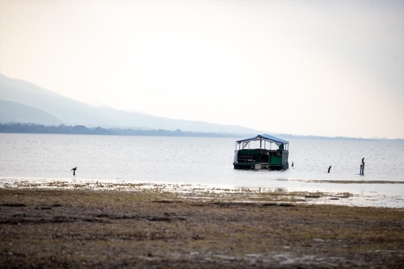 Suyun metrelerce çekildiği gölün kenarındaki iskelelerin büyük bölümü susuz kaldı, göldeki kayıklar tamamen karaya oturdu, toprakta çatlaklar oluştu.