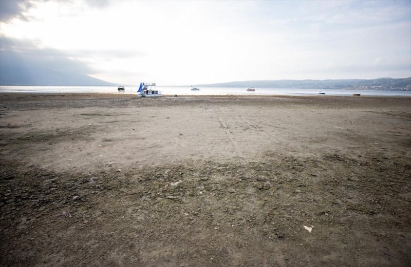 Marmara Bölgesi'nin en önemli içme suyu kaynağı olan Sapanca Gölü'nde de kuraklığın etkisiyle su seviyesi azaldı.