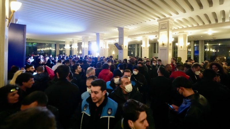 Grubun belediye içerisinde bekleyişi sürüyor.