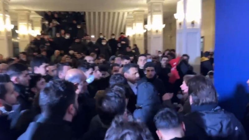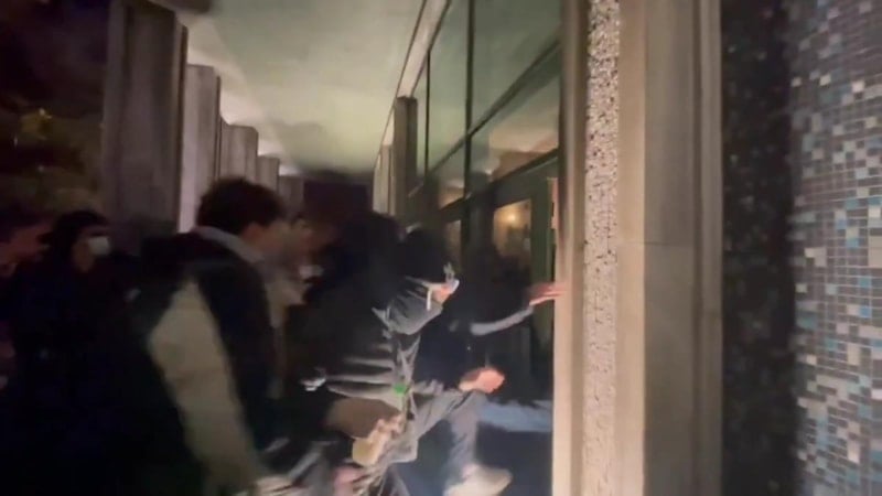 Müdahaleden kaçmaya çalışan göstericiler, İBB binasına yöneldi. Binanın önündeki güvenlik bariyerlerini aşarak kapıyı zorlayan grup, açılmaması üzerine camları kırarak içeriye girdi.